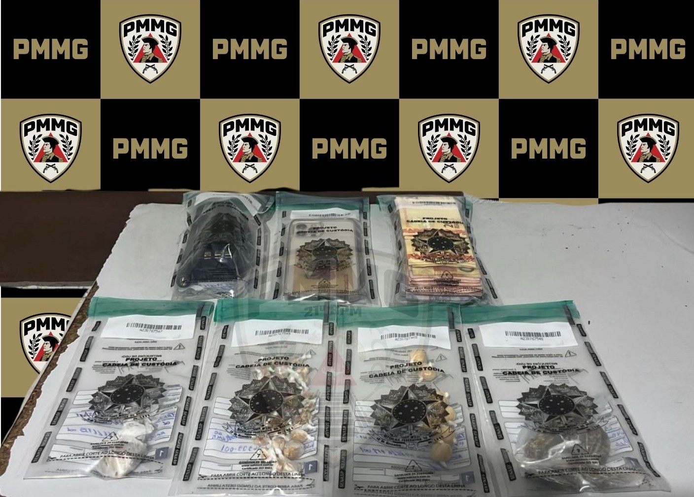 No local, os militares constataram movimentação típica de tráfico e flagraram o autor tentando fugir.