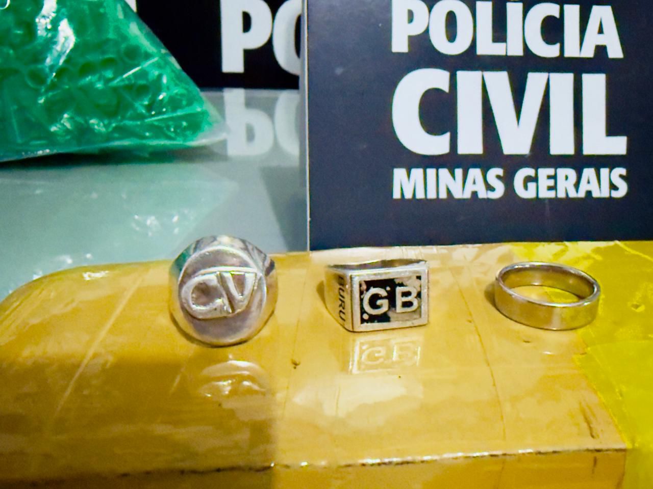 além de anéis com as iniciais “G.B.” e “C.V.”, este último fazendo alusão à facção criminosa.