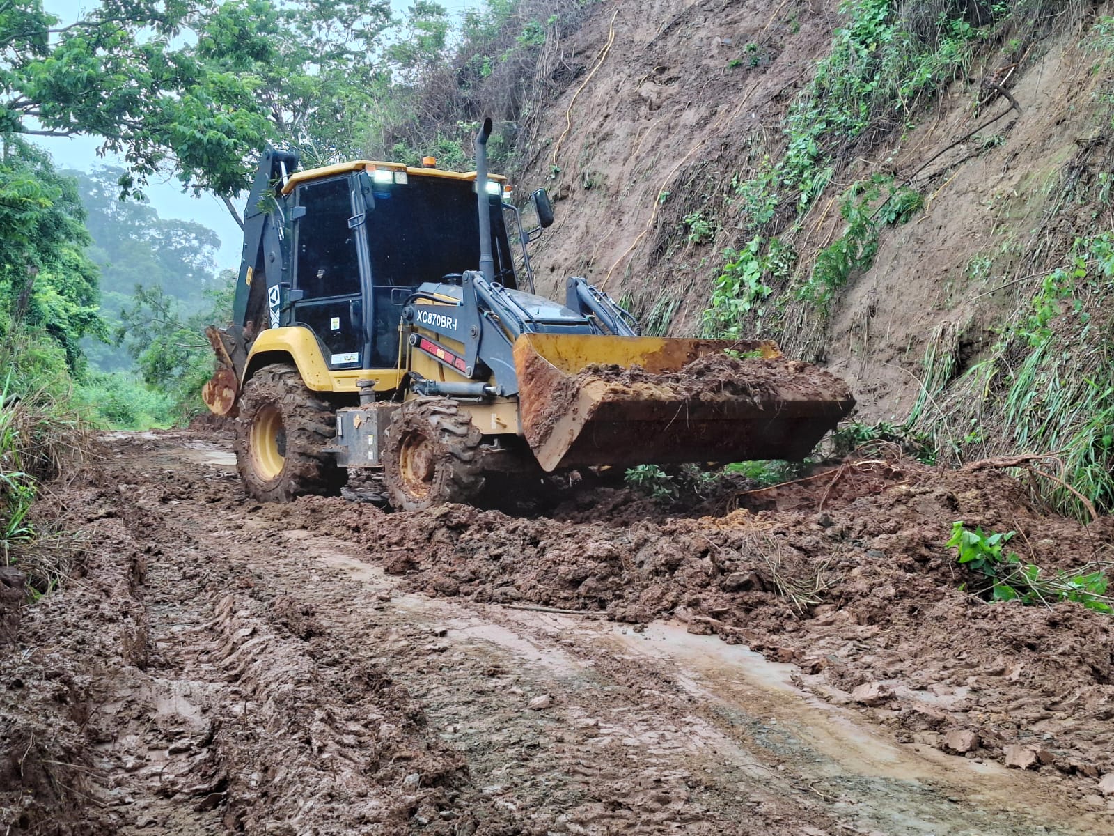 Entre as ações realizadas está a desobstrução no Morro do Bongue, acesso à comunidade do Emboque, onde foi registrada queda de barreira com acúmulo de terra e detritos na pista.