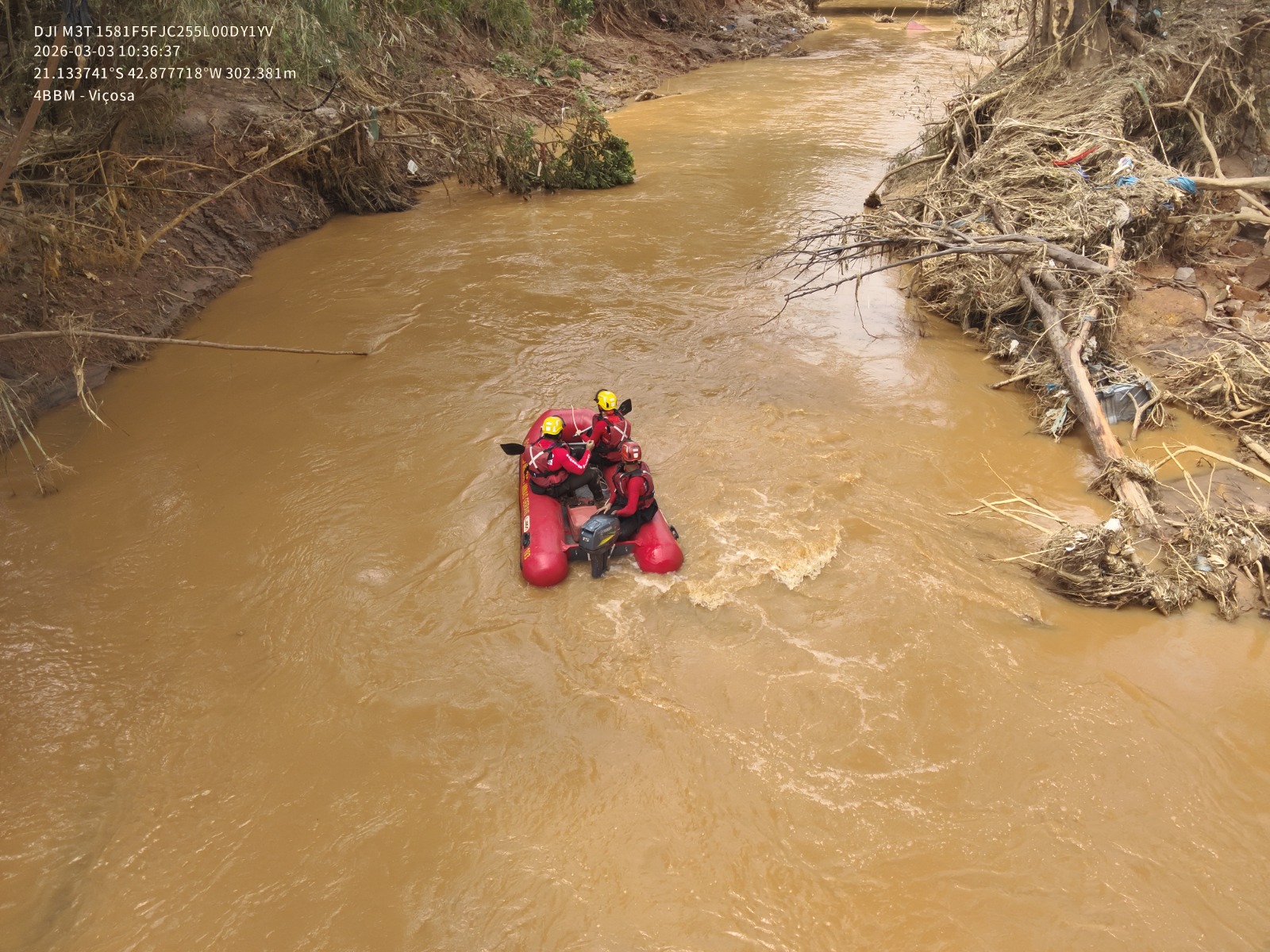 O Corpo de Bombeiros Militar de Minas Gerais (CBMMG) segue atuando de forma ininterrupta nas operações de busca relacionadas às fortes chuvas que atingiram o município de Ubá nos últimos dias.