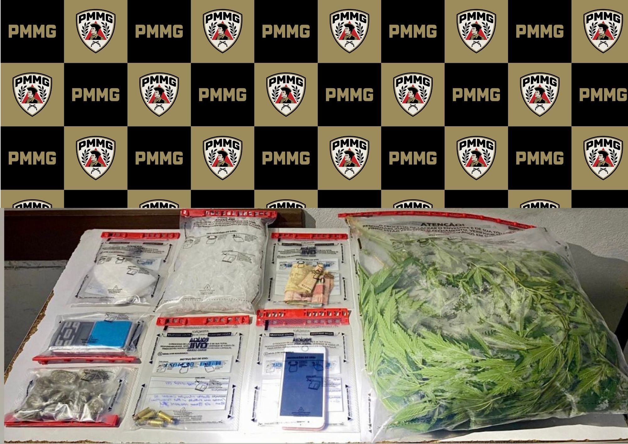 Ainda em Ubá, no bairro Solar, um homem de 27 anos foi preso por tráfico de drogas, posse ilegal de munição e participação em organização criminosa. Durante buscas em sua residência, foram encontrados três pés de maconha, 13 buchas da droga, quatro munições calibre .32, uma balança de precisão e dinheiro. O suspeito, conhecido por envolvimento em homicídios e tráfico, foi preso em flagrante.